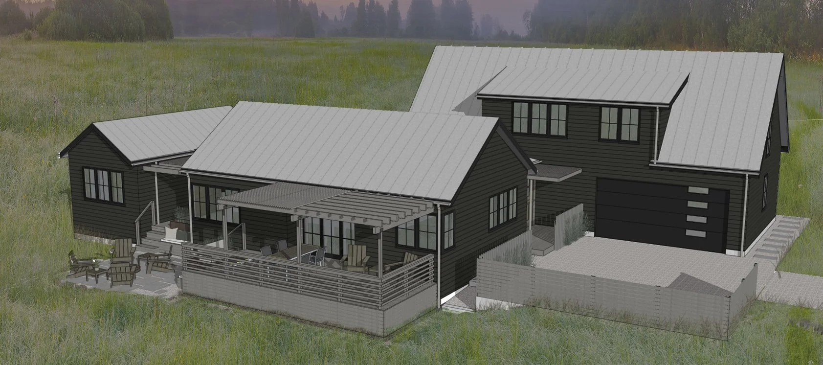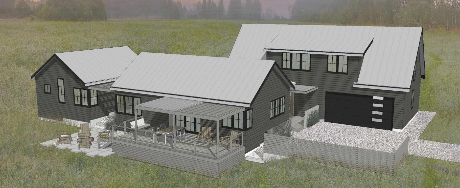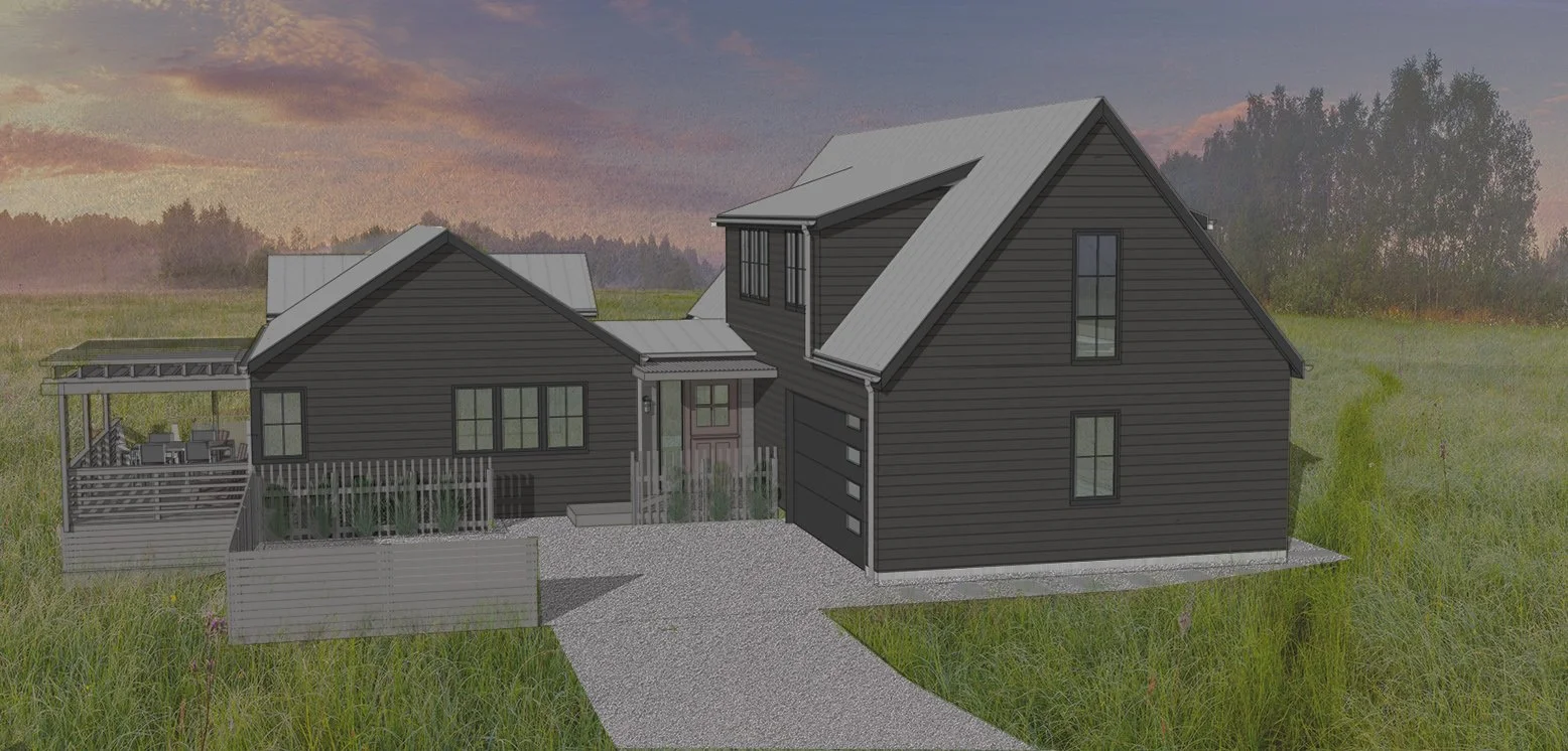 Currently in the building permit phase, this all-new home is organized around three primary components: an open gathering area with kitchen, dining, and living room; an owner’s retreat with master bedroom and library; and a work zone with home office and activity areas, exercise room, and garage with workshop. Together with the owners, we developed a contemporary rustic design language for this home in accordance with the owners’ preferences and to complement the rural character of the region. Expected completion 2027.