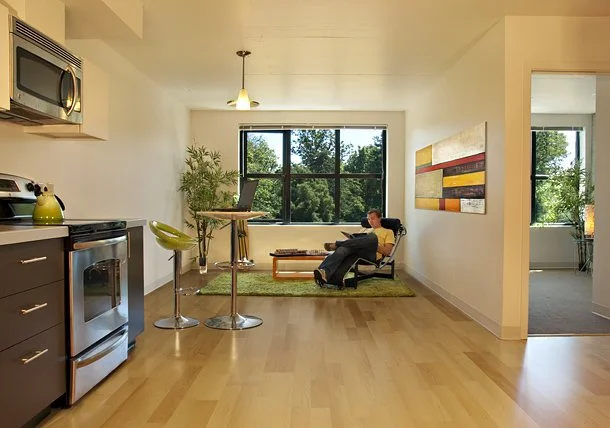 George F. Russell Jr. Hall occupies a prominent site in Seattle’s University District, enhancing a major pedestrian link between the University of Washington campus and University Way, the commercial core of the neighborhood. The project features 3 floors of office space and 15 apartment units. Designed to complement the “Campus Gothic” character of the UW campus, it was designed to include an attractive pedestrian environment, with enhanced paving, lighting, informal seating, and plated greenscreens along the adjacent sidewalks and alley.